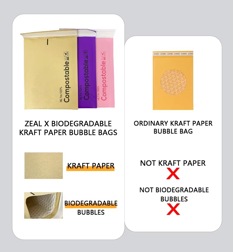 Ως επαγγελματίας κατασκευαστής χάρτινων σακουλών, η Zeal X προσφέρει πλήρως προσαρμόσιμες βιοδιασπώμενες φυσαλίδες χαρτιού kraft, συμπεριλαμβανομένων προσαρμοσμένων μεγεθών, εκτύπωσης λογότυπου και επιλογών βάρους χαρτιού. Αυτά τα κομποστοποιήσιμα ταχυδρομεία είναι 100% βιοδιασπώμενα, μη τοξικά και χωρίς ρύπανση, καθιστώντας τα ιδανικά για βιώσιμες στρατηγικές συσκευασίας. Με ισχυρή αντοχή στο σχίσιμο, ελαφρύ σχεδιασμό και αξιόπιστη προστασία για ταχεία παράδοση, οι ταχυδρομικές φυσαλίδες χαρτιού kraft εμπιστεύονται παγκόσμιοι πωλητές ηλεκτρονικού εμπορίου που αναζητούν λύσεις αποστολής φιλικές προς το περιβάλλον, χωρίς πλαστικά.